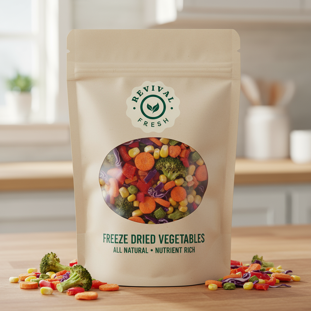 At RevivalFresh, we believe that fresh should never mean fleeting. Using state-of-the-art freeze-drying technology, we preserve fruits, vegetables, meats, and more — keeping taste, texture, and nutrition nearly as vibrant as the moment they were picked.